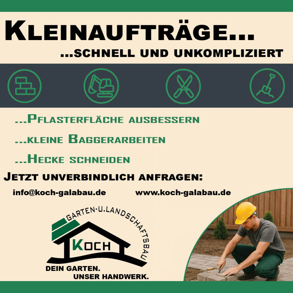 Mit Koch Garten- und Landschaftsbau erhalten Sie schnelle und fachgerechte Hilfe bei allen Kleinaufträgen im Raum Binau, Mosbach, Buchen und im gesamten Neckar-Odenwald-Kreis.